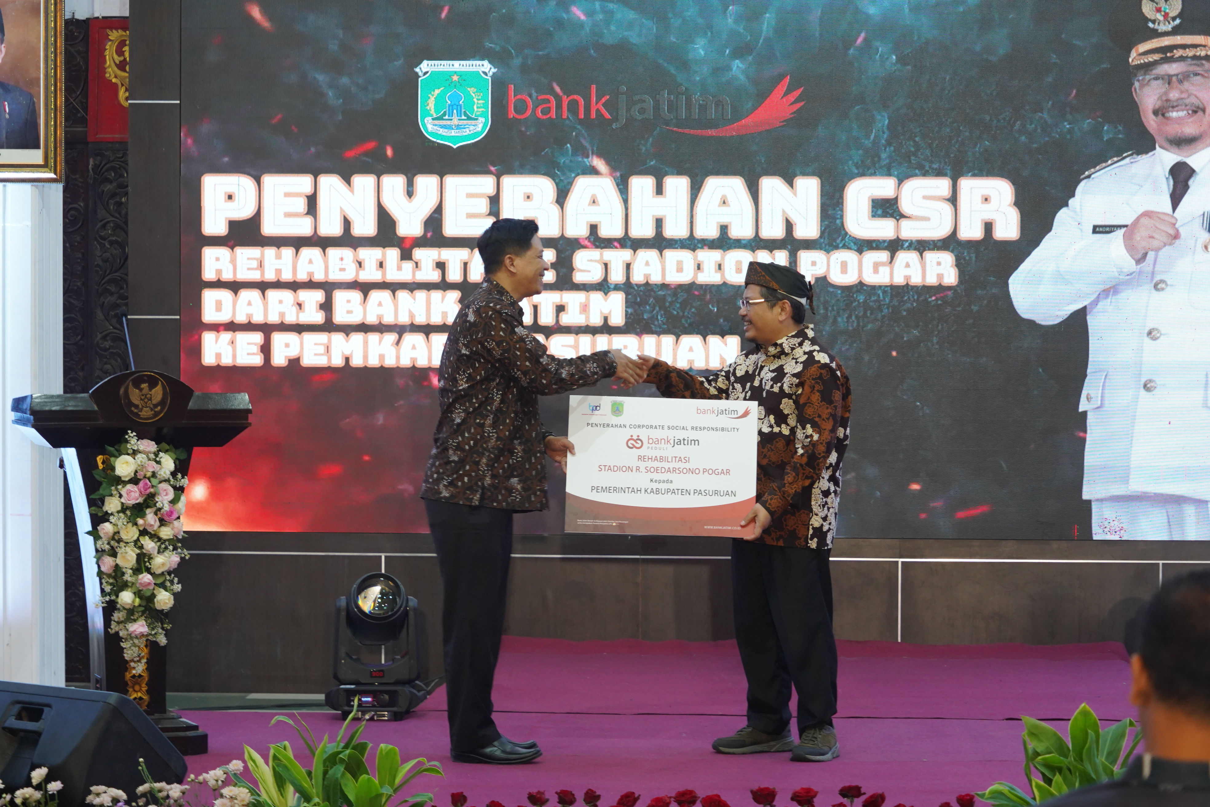 Handover of CSR Aid for the Rehabilitation of the R. Soedarsono Pogar Stadium to the Pasuruan Regency Government